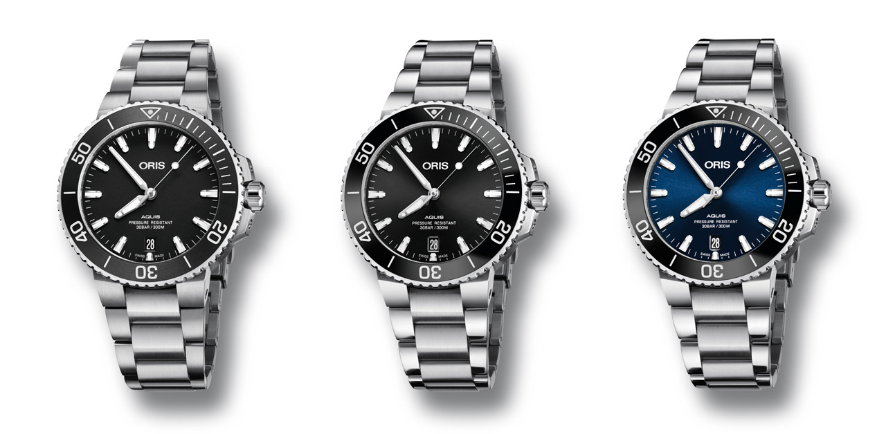 Oris has made the new models available on a variety of straps, including dark brown leather and black rubber, and metal bracelets.
