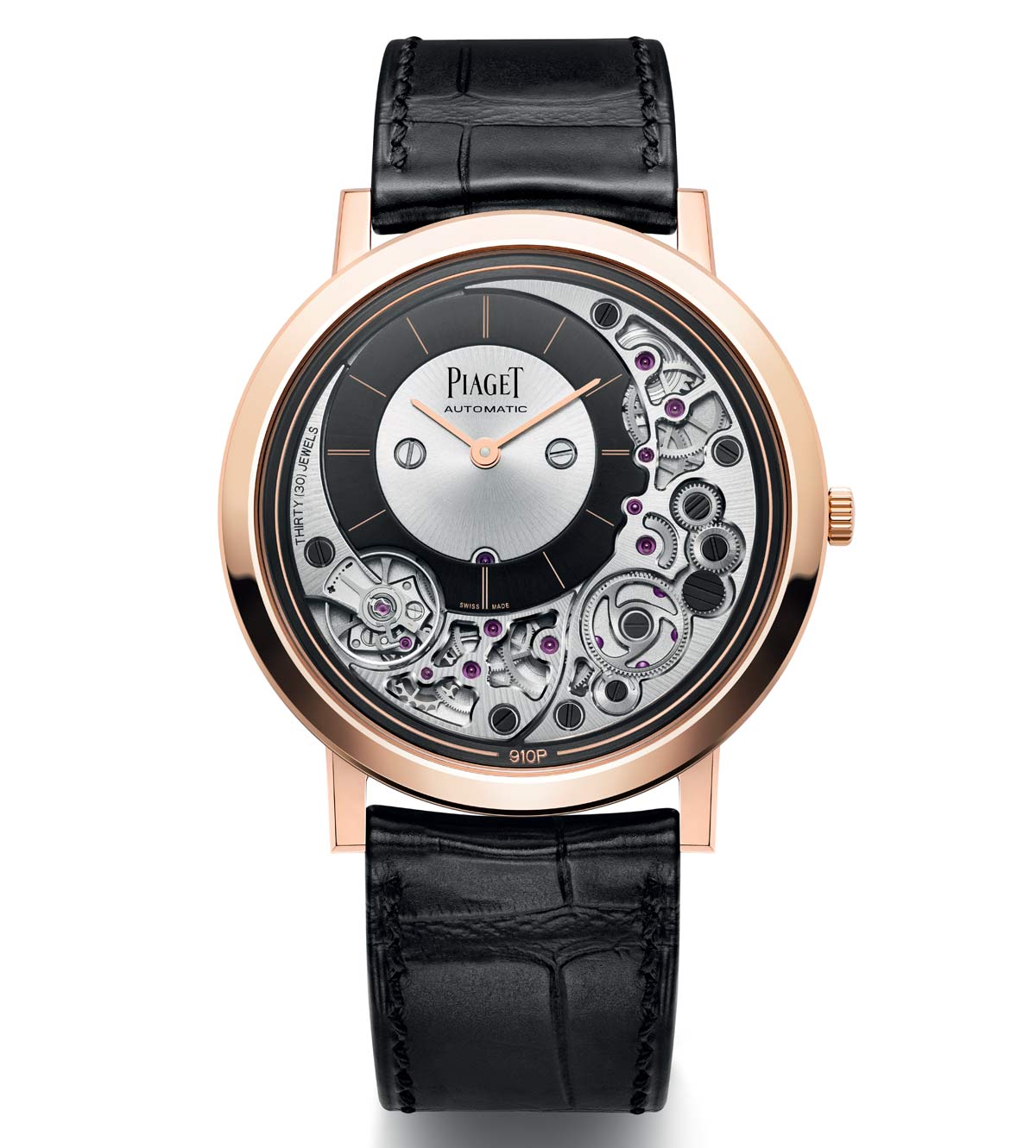 Pursuing the year 2017 celebrations marking the 60th anniversary of its Altiplano line and of its ultra-thin 9P movement, Piaget unveils the Altiplano Ultimate Automatic 910P, a timepiece where movement and case form a single entity, with the latter serving as a mainplate to which the 219 incredibly thin components are affixed.